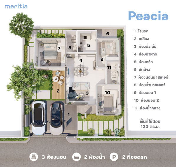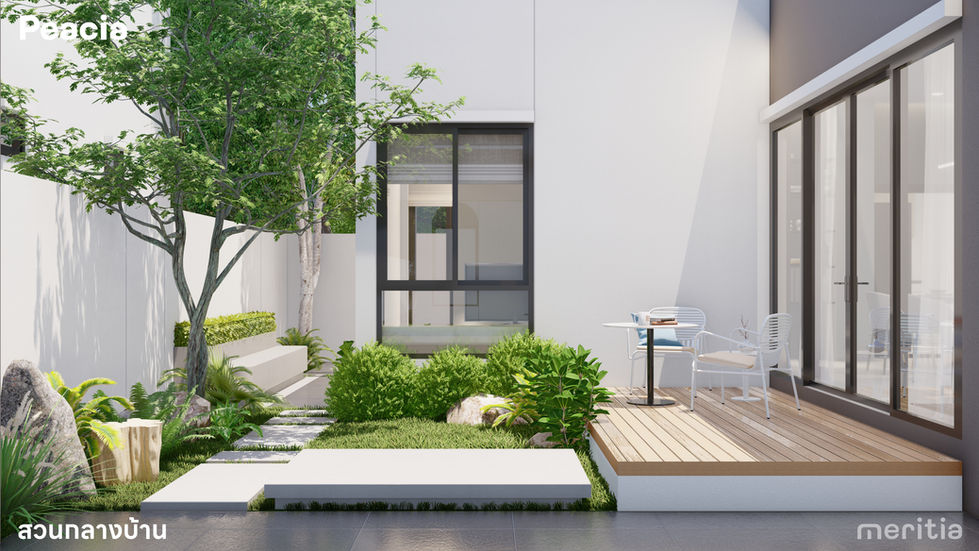 ห้องนั่งเล่นโปร่งโล่ง เชื่อมต่อสวนและทุกฟังก์ชัน